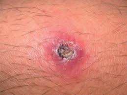 - تسبب قرح جلدية غير مؤلمة تبدأ كبقع حمراء صغيرة ثم تكبر تدريجيًا.